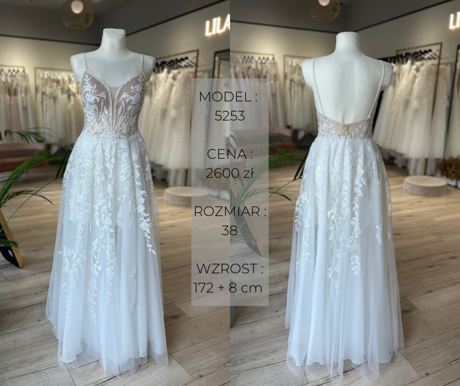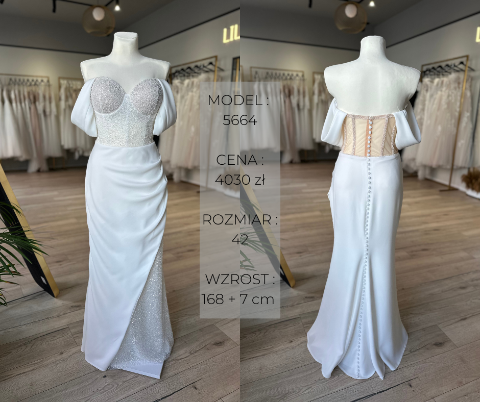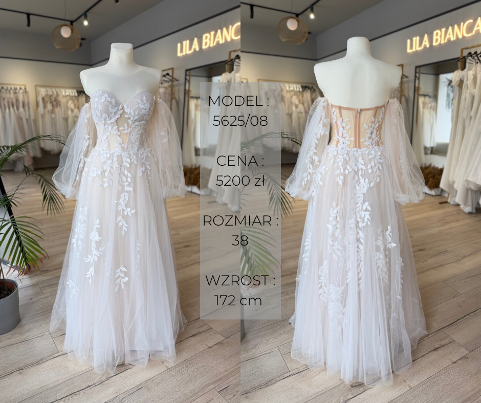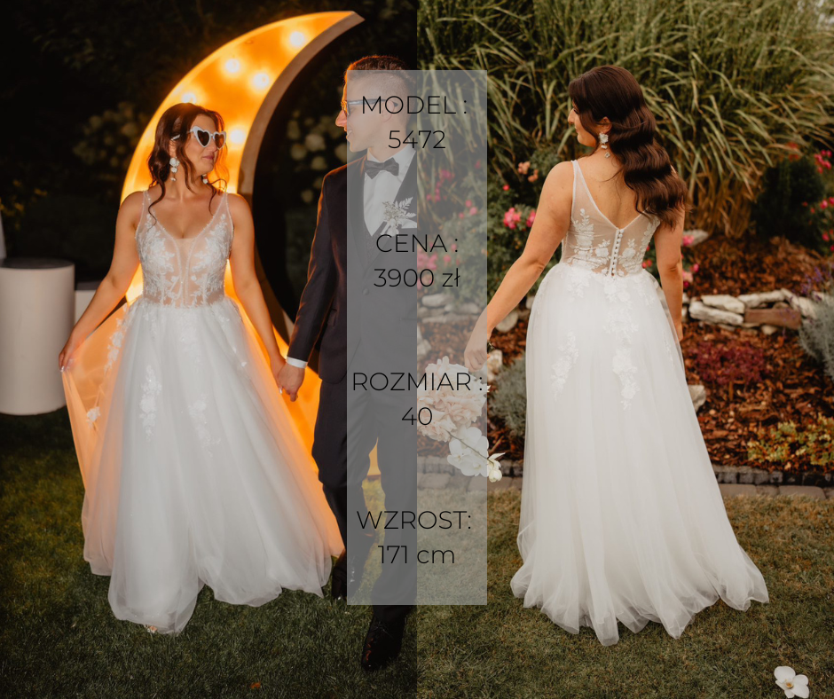 Podane rozmiary są orientacyjne. Suknie można skracać, zmniejszać, dopasowywać – jeśli masz pytania lub wątpliwości co do rozmiaru, zachęcamy do kontaktu! 🙂